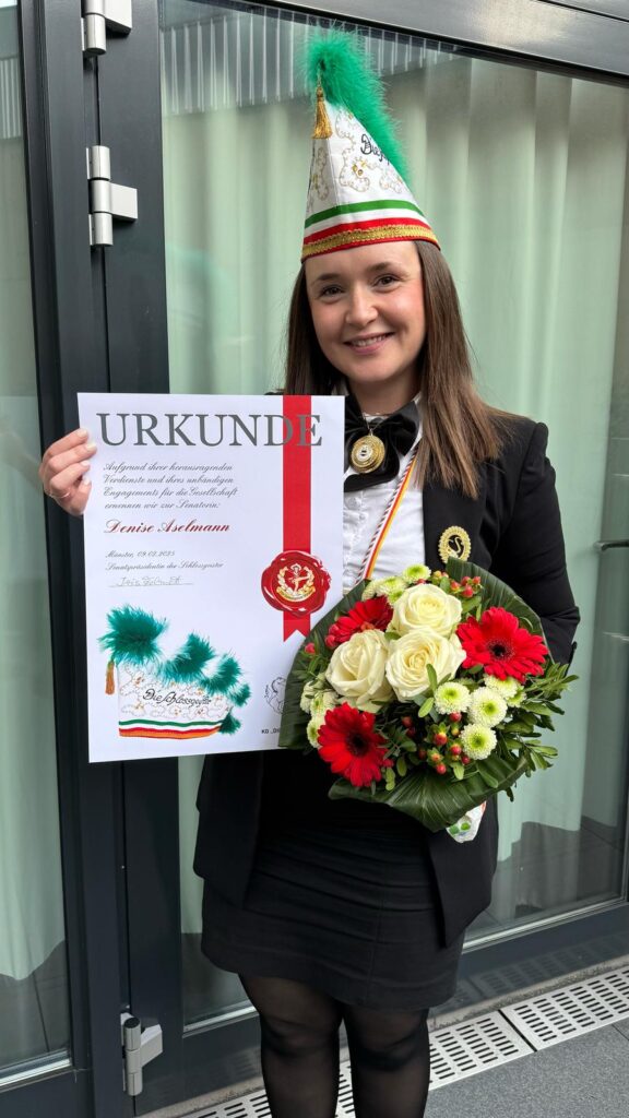 Unsere liebe Denise wurde heute beim Senatorenfrühschoppen der KG die Schlossgeister zur Senatorin ernannt. Damit wurde Dein mittlerweile langjähriges Engagement für den Verein, für den Schlossrat und die Unterstützung des Vorstandes gewürdigt. Deine stets fröhliche und warmherzige Art möchten wir aus unserem Verein und auch aus dem Schlossrat nicht mehr wegdenken. Diese Ehrung heute hast du wirklich verdient. Herzlichen Glückwunsch, und herzlich willkommen im Kreise der Senatorinnen und Senatoren.